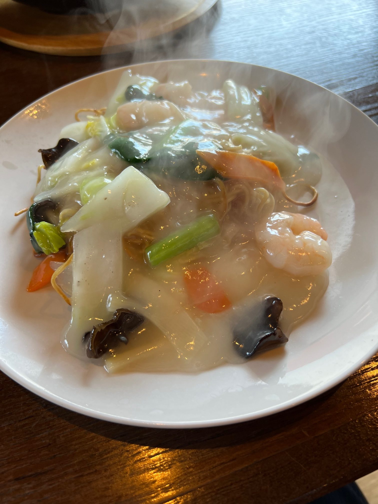 実はこの日のランチ、前に記事で紹介されていた和食屋さんを目指していったのですが、12時20分着で、「残りあと1食」の札が下がっておりました。2人で行っていたので、諦めて中華料理屋さんに入ったという次第です。
